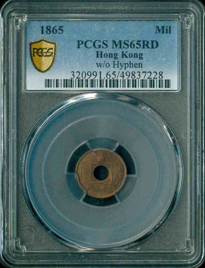 1865 香港一文 w/o Hyphen PCGS MS65RD 編號: 49837228