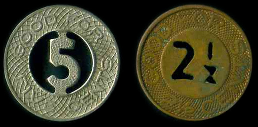 1924 上海英商公共汽車公司代用幣 2½,5 Cents 品相如圖 編號: NIL(共2枚)