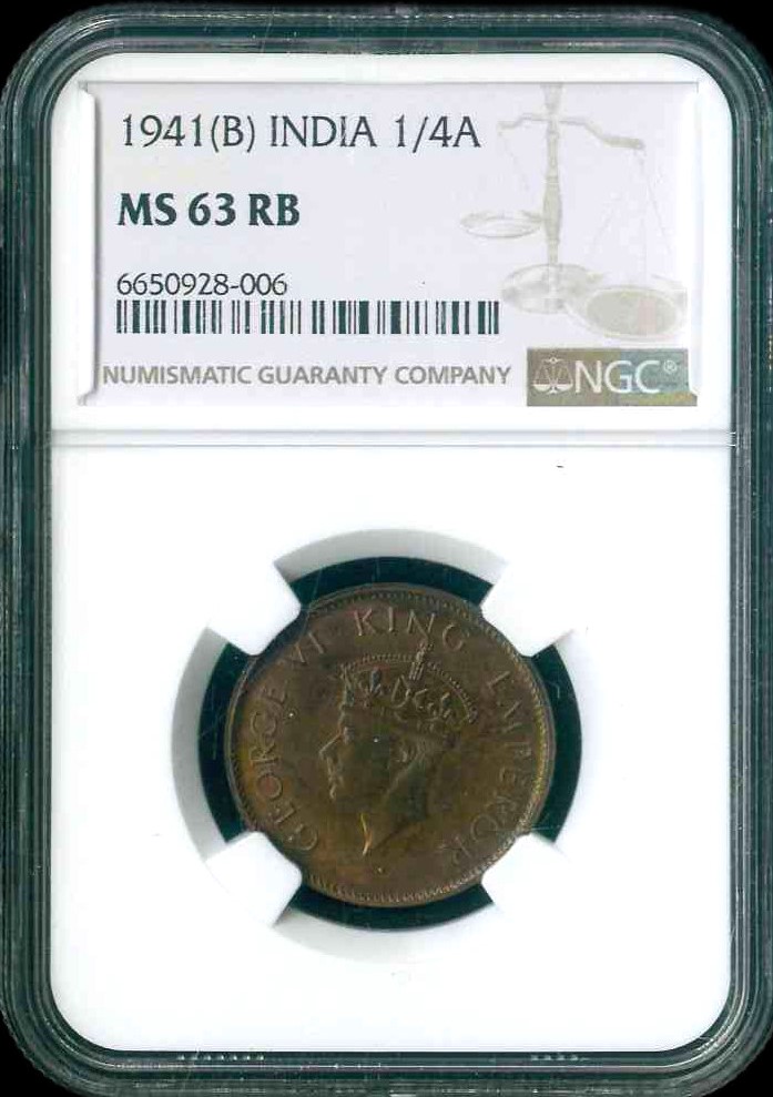 1914(B) 印度 ¼A NGC 63 RB 編號:6650928-006