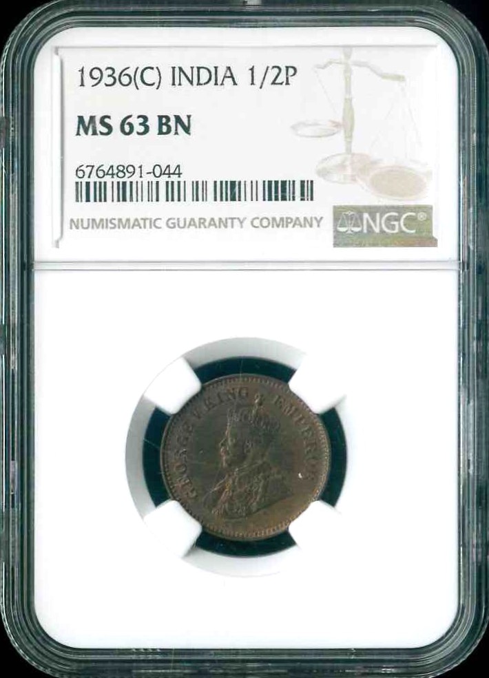 1936(C) 印度 ½P NGC MS63 BN 編號:6764891-044