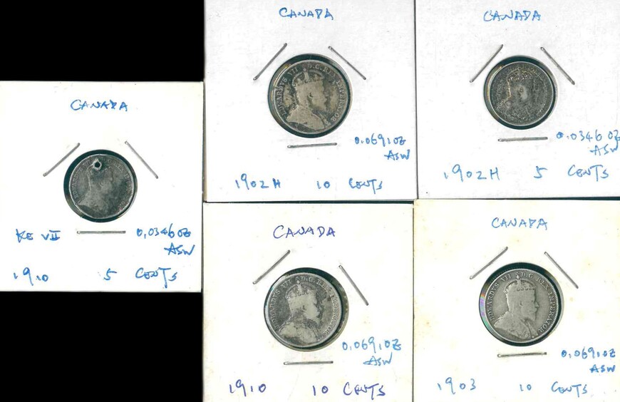 1902H-1910 加拿大銀幣 5-10 Cents (0.0346/0.0691oz Asw) VG/F/VF 編號:NIL(共5枚)