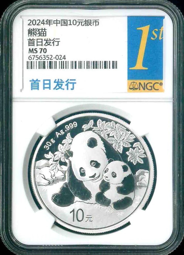 2024 中國熊貓銀幣 $10 (30g Ag.999) NGC MS70 編號:6756352-024(首發版)