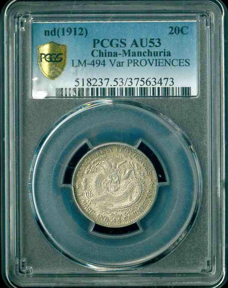 1912ND 東三省造宣統元寶一錢四分四厘 PCGS AU53 編號:37563473