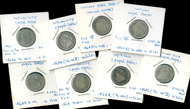 1867R (Yr.XX1)/1868R (Yr.XX II) Papal States (教皇國) 10 Soldo VG/F/VF 編號:NIL(共8枚)