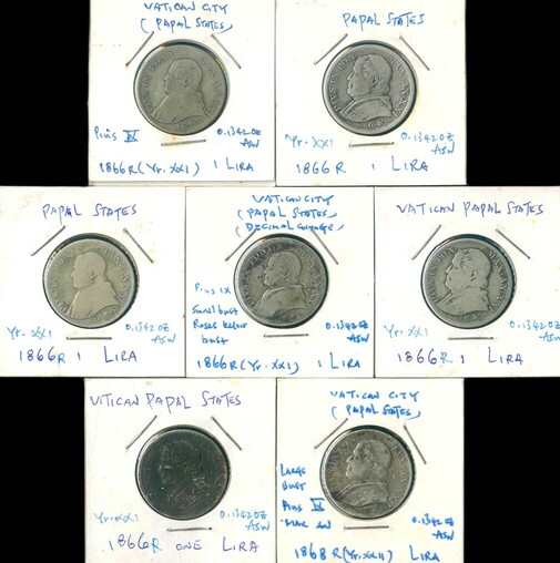 1866R/68R Papal States (教皇國) Lira VG/F 編號:NIL(共7枚)