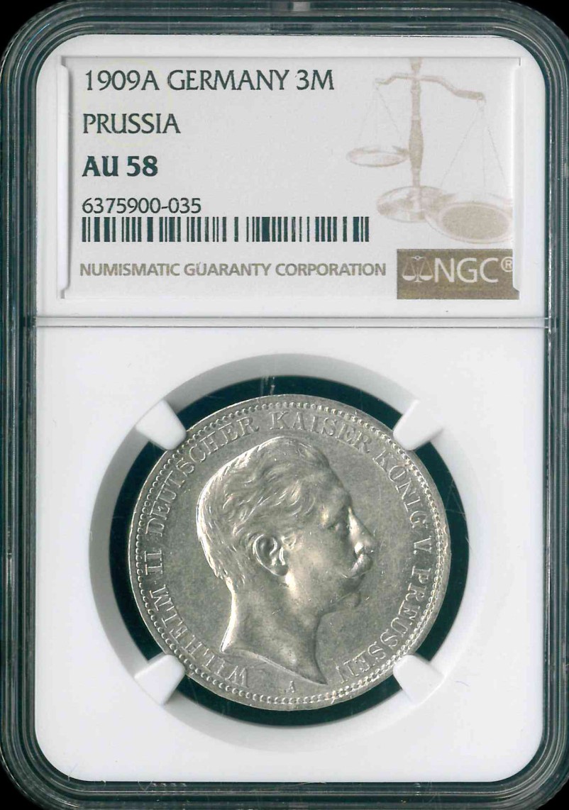 1909A 德國 3M (Prussia) NGC AU58 編號:6375900-035