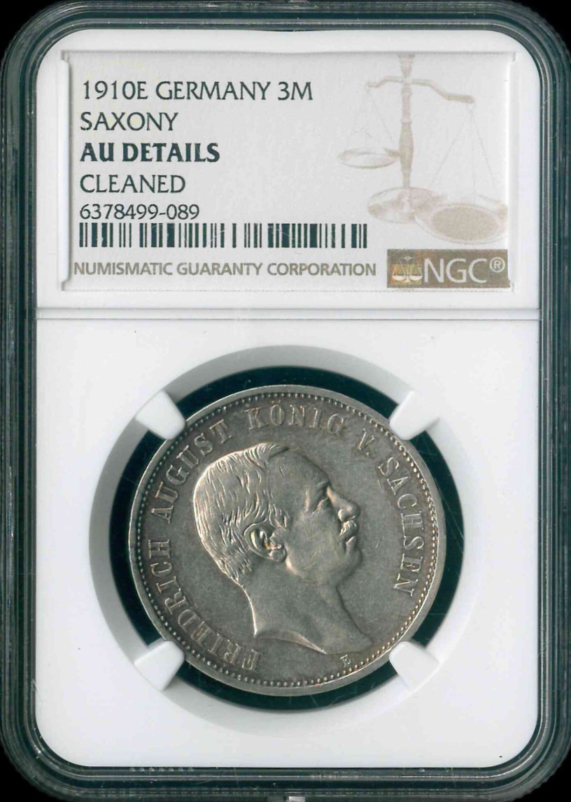 1910E 德國 3M (Saxony) NGC AU Details 編號:6378499-089