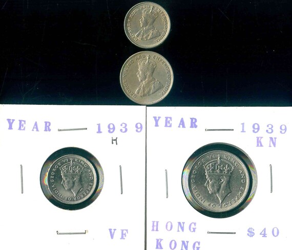 1935/1939KN/H 香港五仙 一毫 品相如圖 編號:NIL(共4枚)