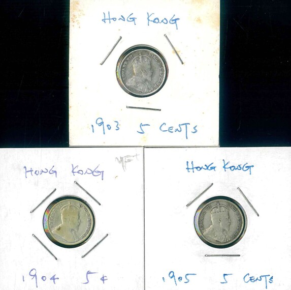 1903-1905 香港五仙 品相如圖 編號:NIL(共3枚)