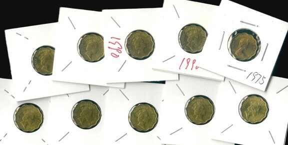 1975-1991 香港2毫 品相如圖 編號:NIL(共10枚)