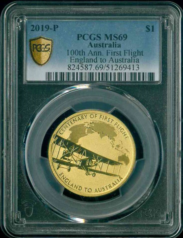 2019-P 澳洲(英國到澳洲飛行100週年銅幣) $1 PCGS MS69 編號:51269413