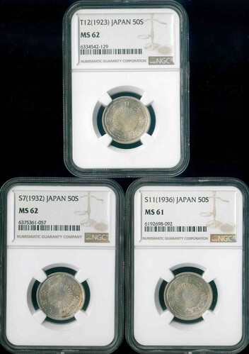 1923-1936 日本大正12年昭和7,11年 50錢 NGC MS61-62 編號:6334542-129…(共3枚)