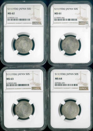 1936 日本昭和11年 50錢 NGC MS62-64 編號:6190929-113…(共4枚)