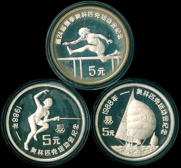 1988 中華人民共和國(夏季奧運會) $5 (3全) Proof 編號:NIL(共3枚)
