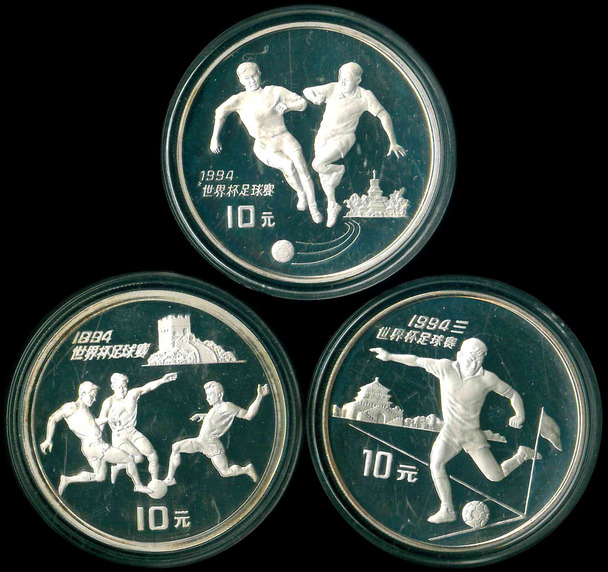 1993/94 中華人民共和國(世界盃足球賽) $10 (3全) Proof 編號:NIL(共3枚)