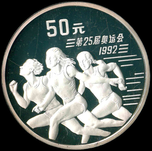 1991 中華人民共和國(夏季奧運會-競跑) $50 (5oz Asw) Proof 編號:NIL