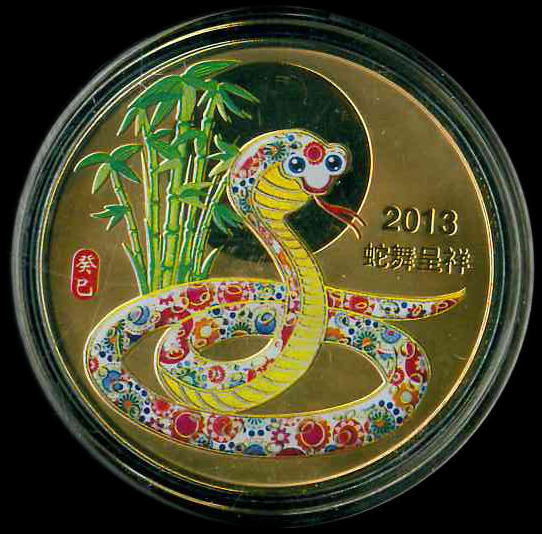 2013 中國蛇年生肖紀念鍍金銅章 品相如圖 編號:NIL(附盒)