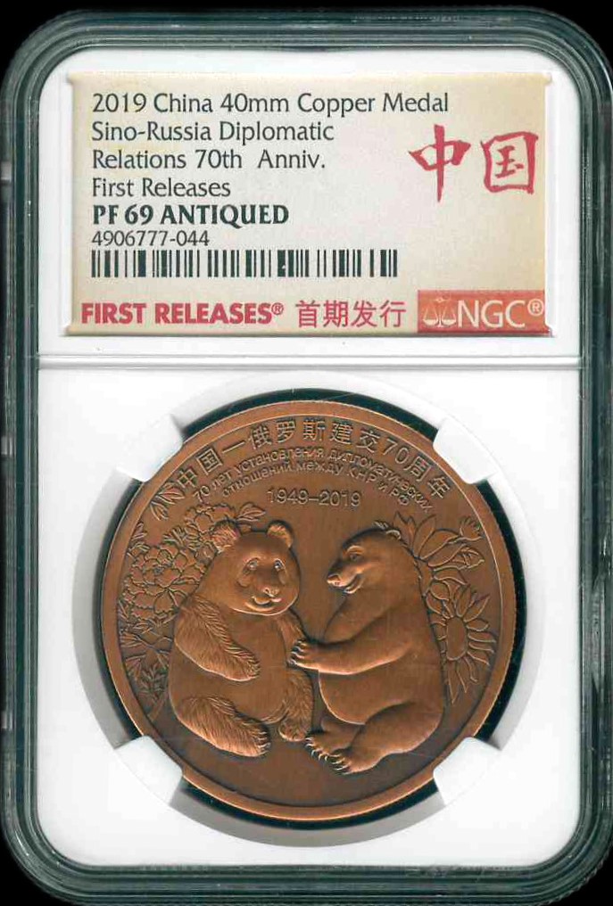 2019 中國/俄羅斯建交70周年紀念(熊貓/熊-銅章) NGC PF69 Antiqued 編號:4906777-044