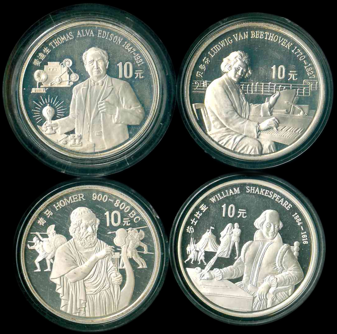 1990 中華人民和國 (世界歷史人物-4全) $10 Proof 編號: NIL(共4枚)