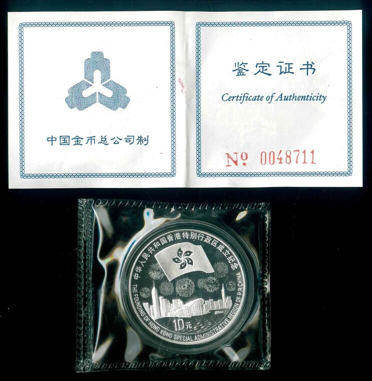 1996/1997 中華人民和國 (97香港回歸) $10 Proof 編號: NIL(原裝,共2枚))