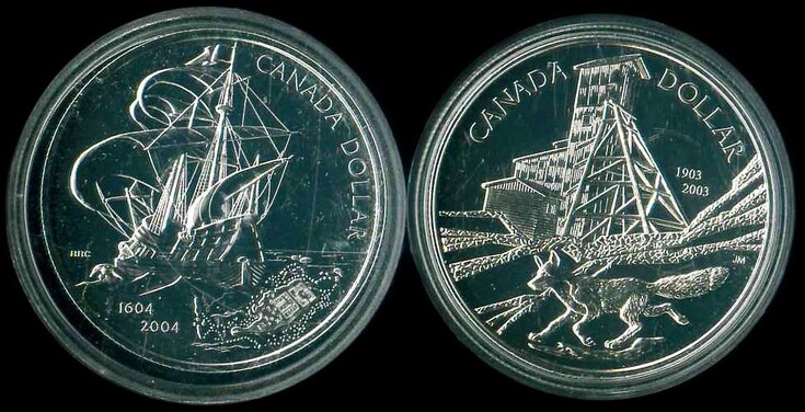 2003/2004 加拿大紀念銀幣 Dollar (999.9 Silver) 品相如圖 編號:NIL(共2枚)