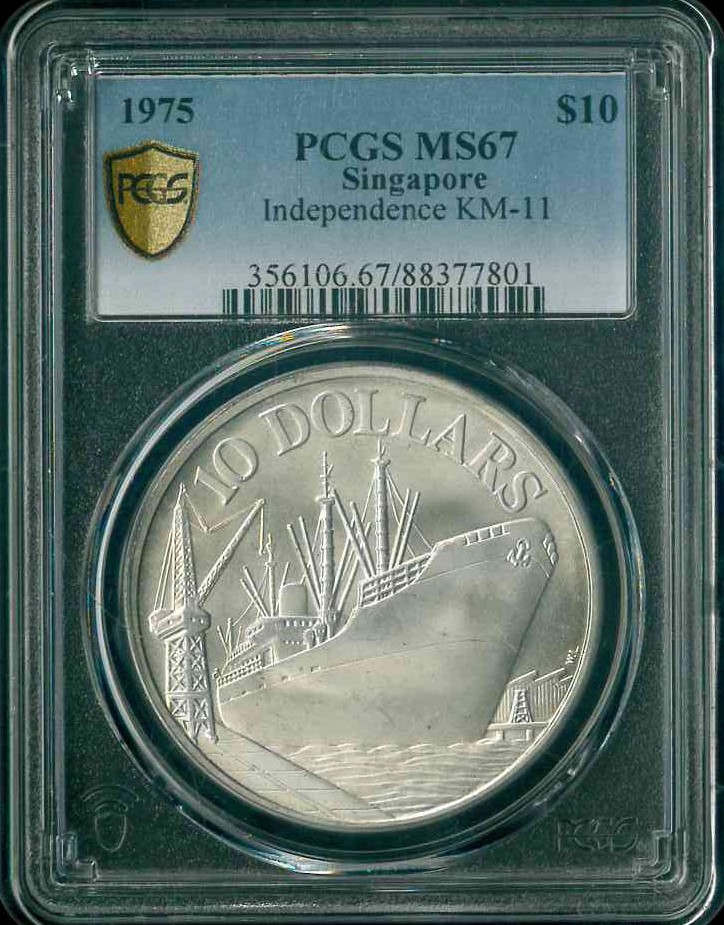1975 星加坡(獨立10週年銀幣) $10 PCGS MS67 編號:88377801