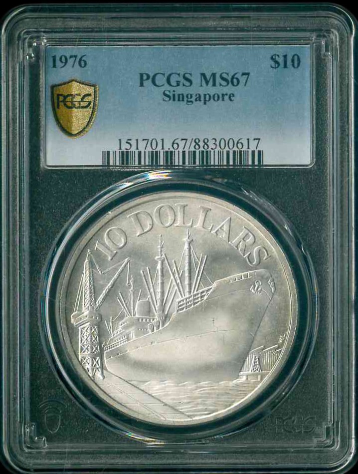 1976 星加坡(貨輪銀幣) $10 PCGS MS67 編號:88300617