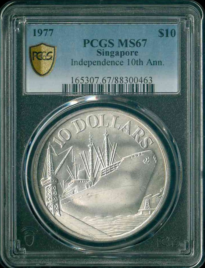 1977 星加坡(獨立10週年銀幣) $10 PCGS MS67 編號:88300463