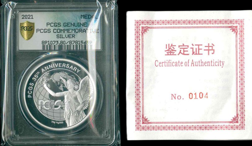 2021 PCGS 35周年紀念銀章 (30g.Ag 999) PCGS Genuine 編號:87815659