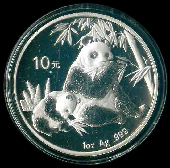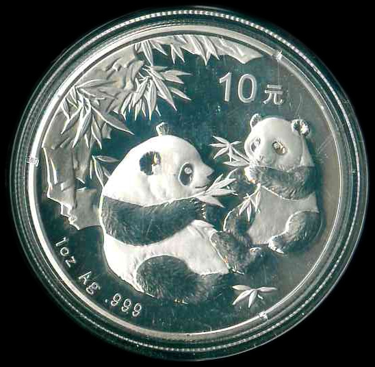 2002 中國熊貓銀幣 $10 (1oz Ag.999) UNC 編號:NIL