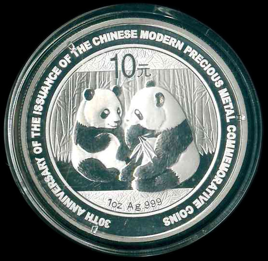 2009 中國現代貴金屬30周年熊貓銀幣 $10 (1oz Ag.999) UNC 編號:NIL