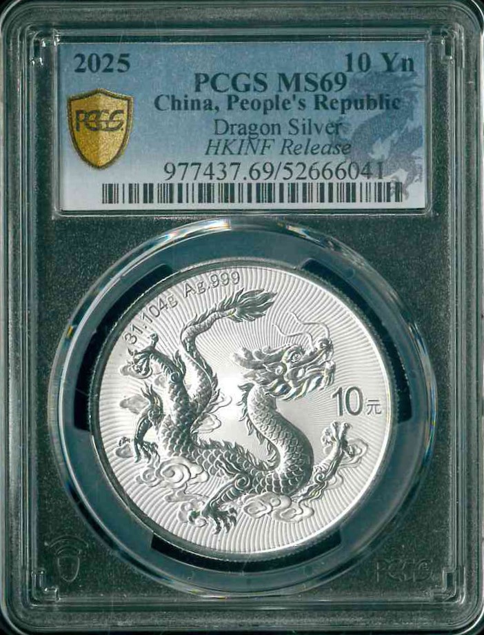 2025 中國(龍/長城)銀幣 $10 (31.104g Ag.999) PCGS MS69 編號:52666041(HKINF)