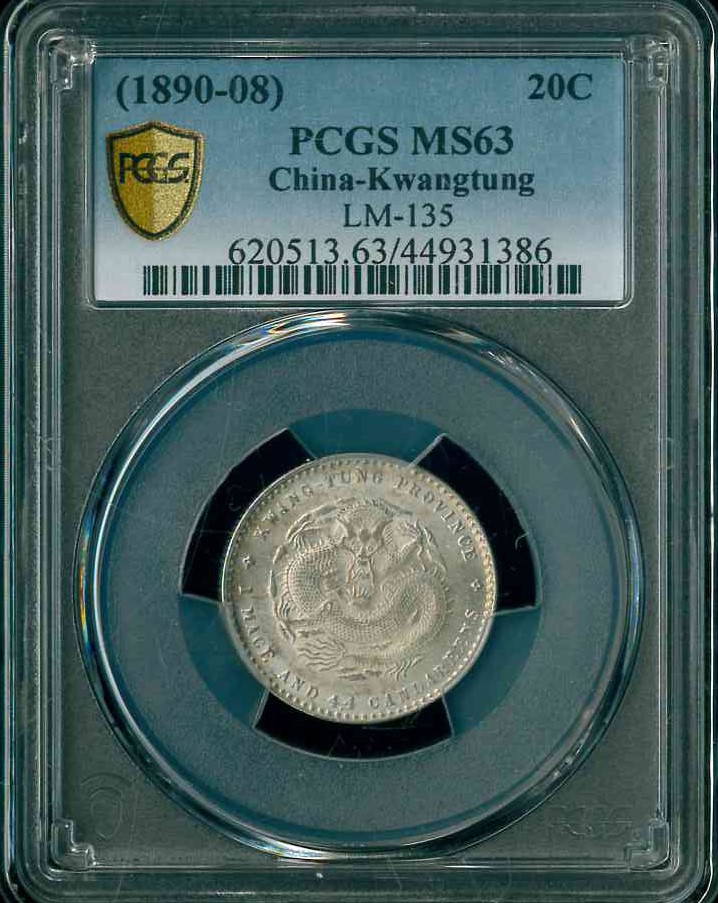 1890-08 廣東省造光緒元寶一錢四分四厘 PCGS MS63 編號:44931386