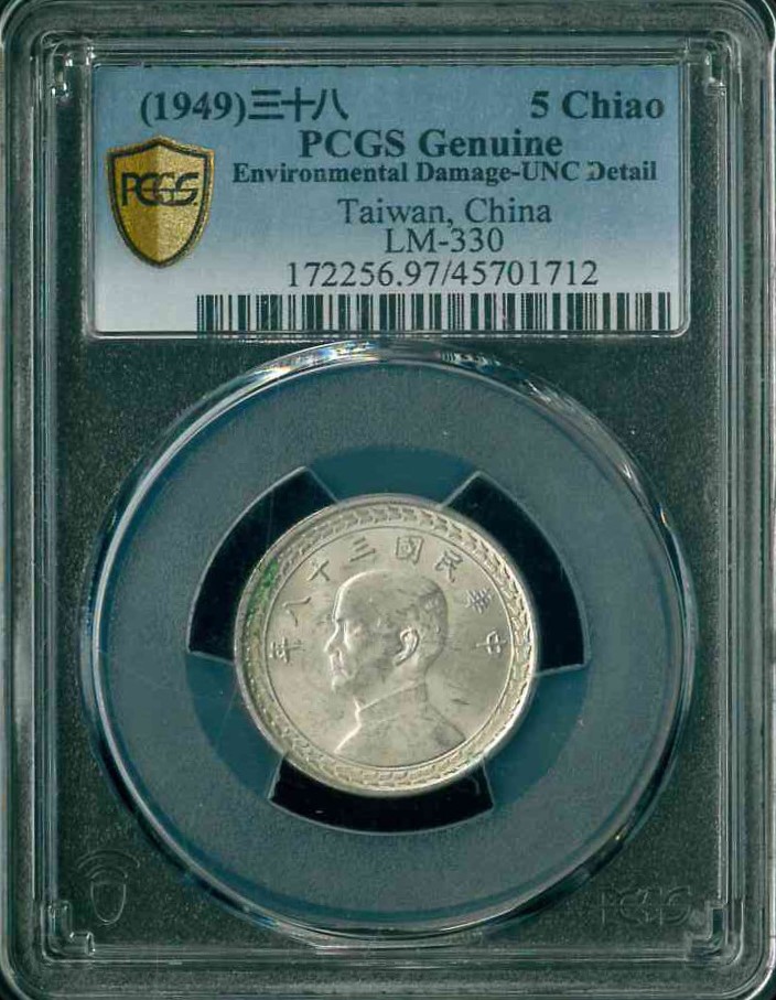 1949 中華民國38年台灣省伍角 PCGS UNC Detail 編號:45701712