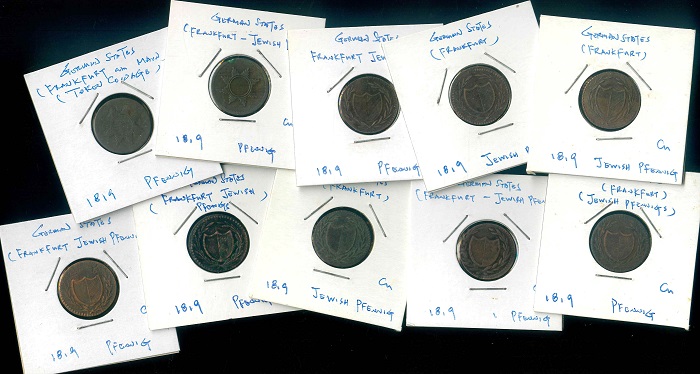 1819 德國 (Frankfurt) Jewish Pfennig (2種不同) VF 編號:NIL(共10枚)