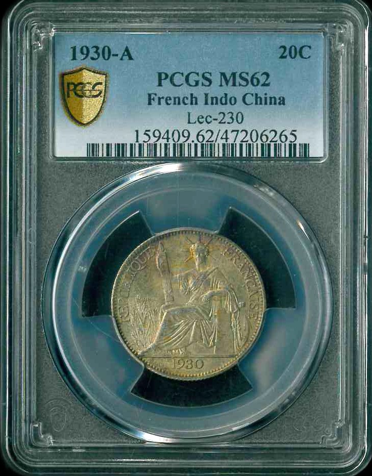 1930A 法屬印度支那 20 Cents PCGS MS62 編號: 47206265