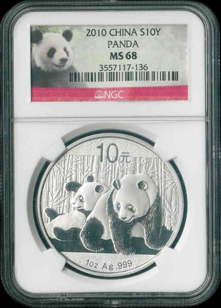 2010 中國熊貓紀念幣 S10Y (1oz Ag.999) NGC MS68 編號:3557117-136