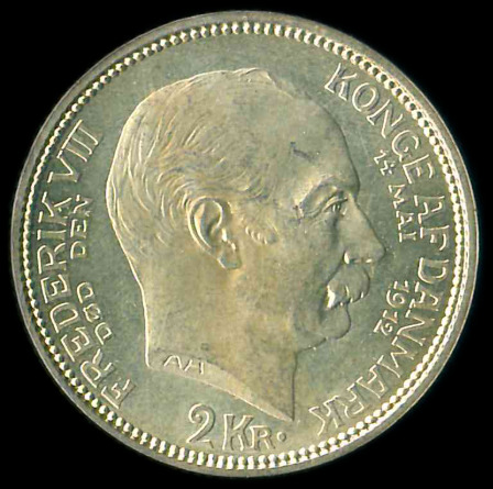 1912 丹麥紀念幣 2 Kroner UNC 編號:NIL