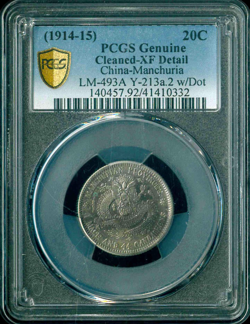 1914-15 東三省造宣統元寶一錢四分四厘 PCGS XF Detail 編號:41410332(背中心有點)
