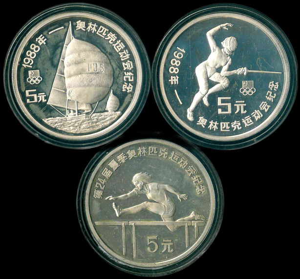 1988 中華人民共和國(1988 奧運會-3全齊) $5 Proof 編號:NIL(共3枚)