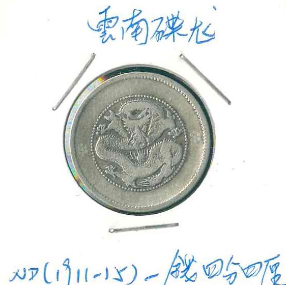 1911-15ND 雲南省造碟龍一錢四分四厘 VG 編號:NIL
