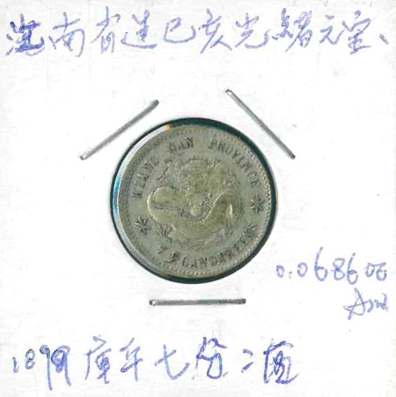 1890 江南省造光緒元寶七分二厘 (0.0686oz Asw) VF 編號:NIL