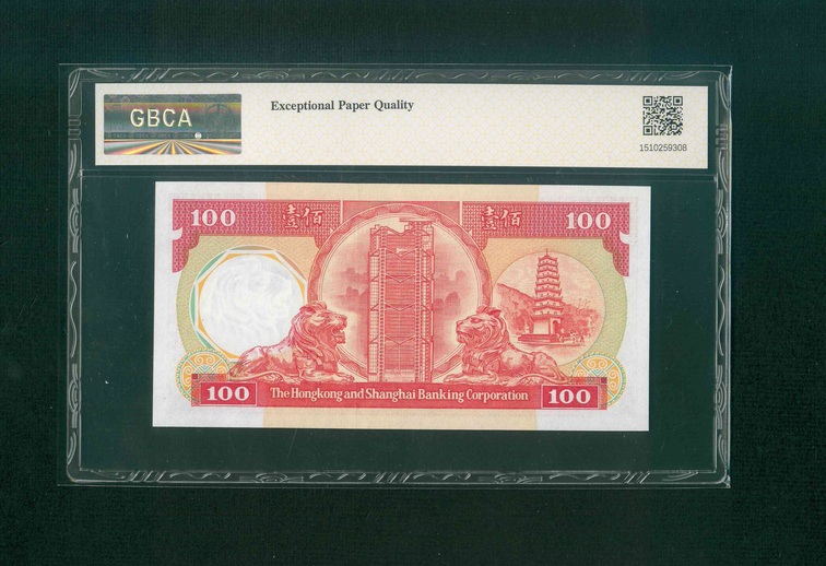 1985 香港上海滙豐銀行 $100 GBCA 66 EPQ 編號: AA706822(頭版系列,頂級雪白)