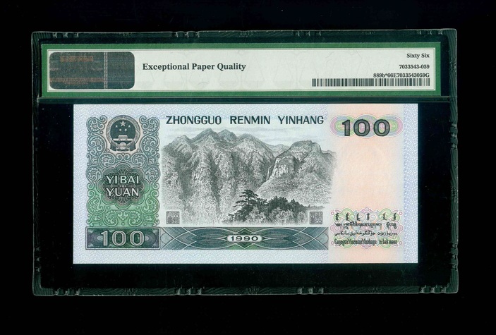 1990 中國人民銀行 $100 PMG 66 EPQ 編號: ZN01364376(補版系列,頂級雪白)