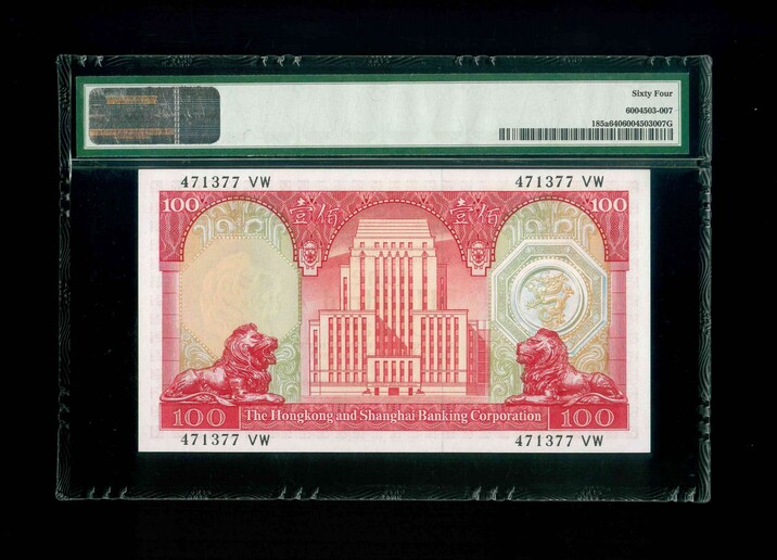 1972 香港上海滙豐銀行 $100 PMG 64 編號: 471377 VW