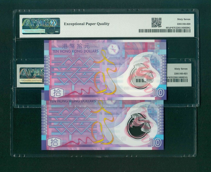 2014 香港特區政府 $10 PMG 67 EPQ 編號: ZZ863319-20(共2張,補版連號,頂級雪白)
