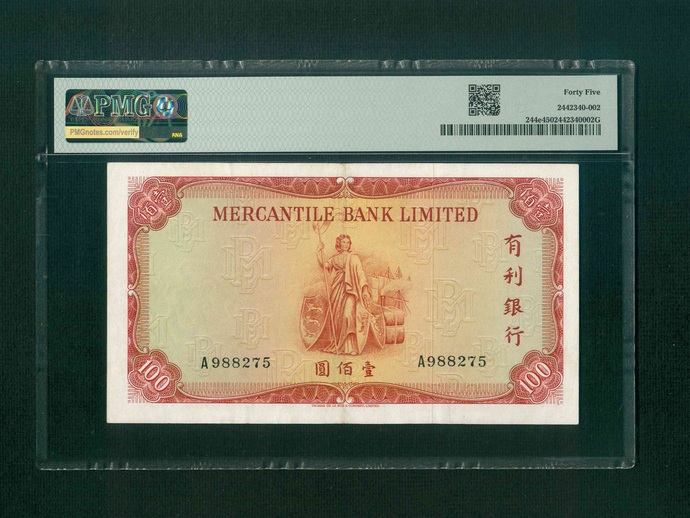 1973 有利銀行 $100 PMG 45 編號: A988275