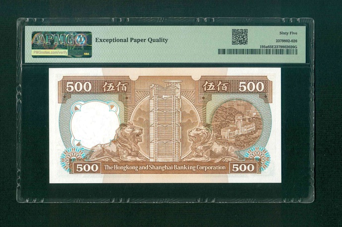 1987 香港上海滙豐銀行 $500 PMG 65 EPQ 編號: AA480934(頭版系列,頂級雪白)