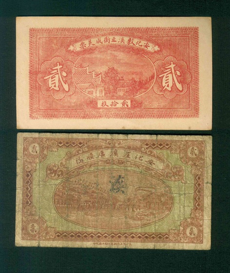 民國 安化敷溪成美 20枚/ 崖溪廣順福 2串文 Fine-AU 編號: 0270390…(共2張,錢庄票)