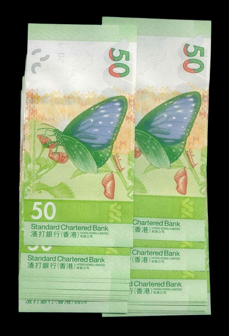 2023 香港渣打銀行 $50 UNC 編號: BK123401...(共20張,10對2同號,頂級雪白)